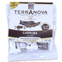 Paquet de 40 g de bonbons artisanaux à la caroube Terranova , transformés à chaleur directe.