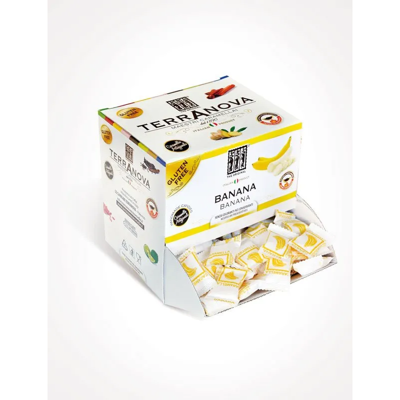 Paquet de 1 kg de bonbons artisanaux à la banane Terranova fabriqués à la flamme directe.