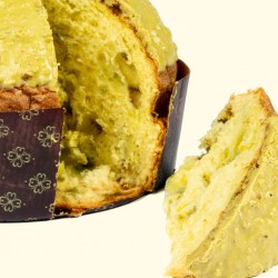 Panettone artisanal aux gouttes de pistache sans raisins secs et agrumes confits